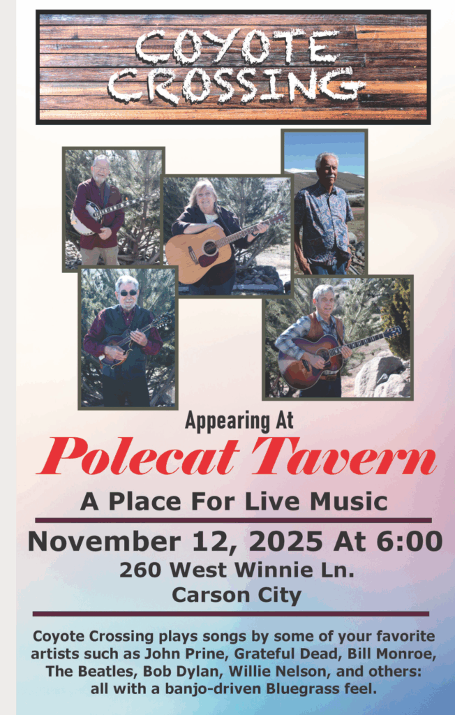 The recording is then broadcast at a later date (after the editing is completed) on KNVC 95.1, Carson City’s local community radio station. The attendance is free so drop on in sometime and join in the fun.