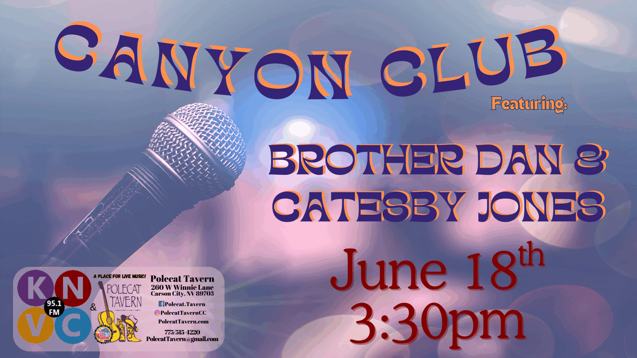 Wednesday, June 18th Canyon Club will feature Brother Dan Palmer & Catesby Jones for an interview and to share tunes. Drop on in and check it out! Attendance is free. Show starts at 3:30. Doors open at 1pm. Canyon Club … Continue reading →